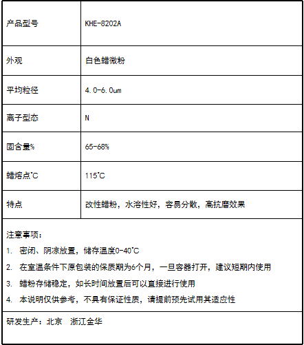 KH-8202A 改性蜡粉,采用独特的工艺,通过表面改性,使其及容易分散于水性体系当中,且稳定高,耐温效果好,降低涂层表面的摩擦系数,提供优异的抗摩擦效果。